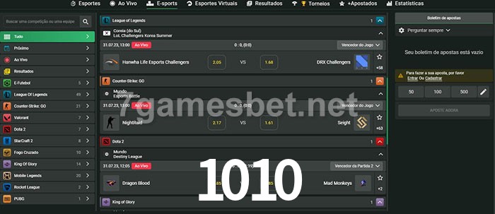 A aposta 1010 oferece aos jogadores a experiência mais conveniente de apostas em eSports!